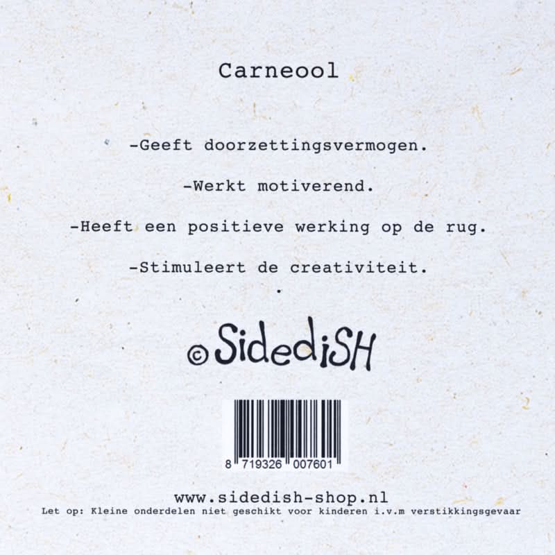 Op de achterkant van de kaart staat de werking van de steen beschreven.