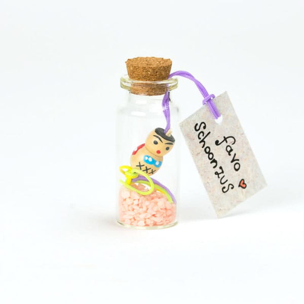 Flesje van 4,9cm hoog en 2,2cm breed.