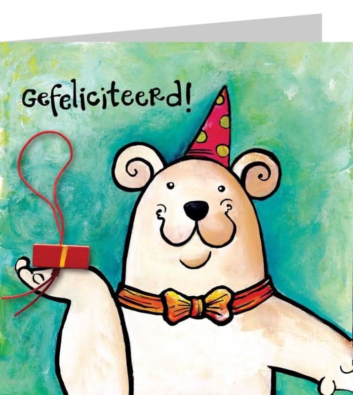 Bij deze kaart zit een gelukspoppetje van een kadootje , deze kan eenvoudig van de kaart worden afgehaald.
