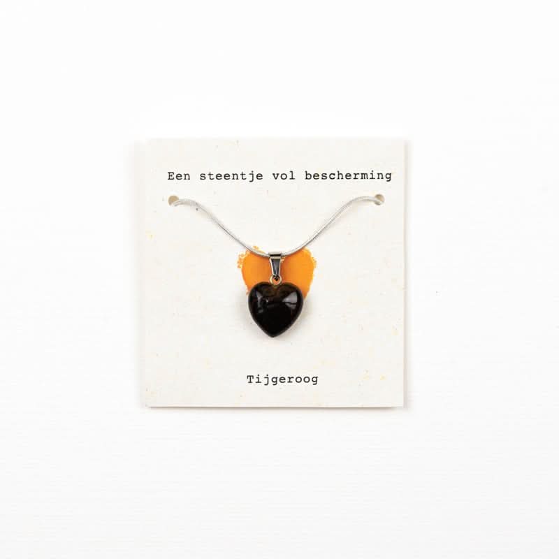 Verzilverde ketting met edelsteen hartje van Tijgeroog