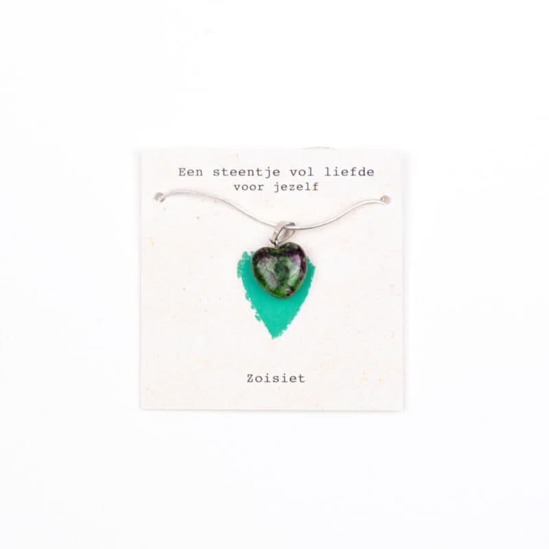 Verzilverde ketting met edelsteen hartje van Zoisiet