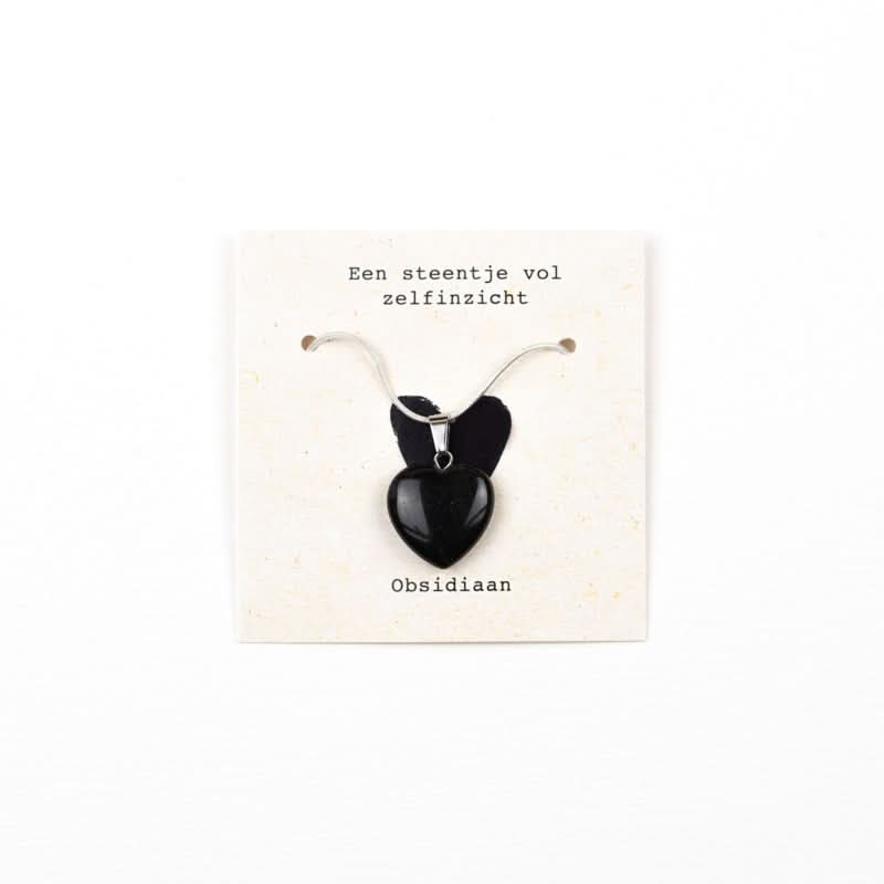 Verzilverde ketting met edelsteen hartje van Obsidiaan.