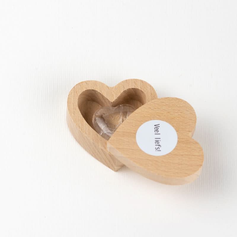 Hart van Rozenkwarts in houten harten doosje, wat een lief cadeautje!