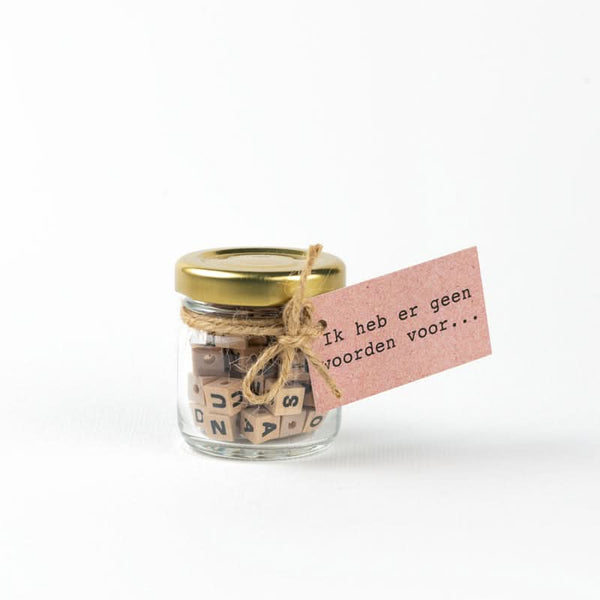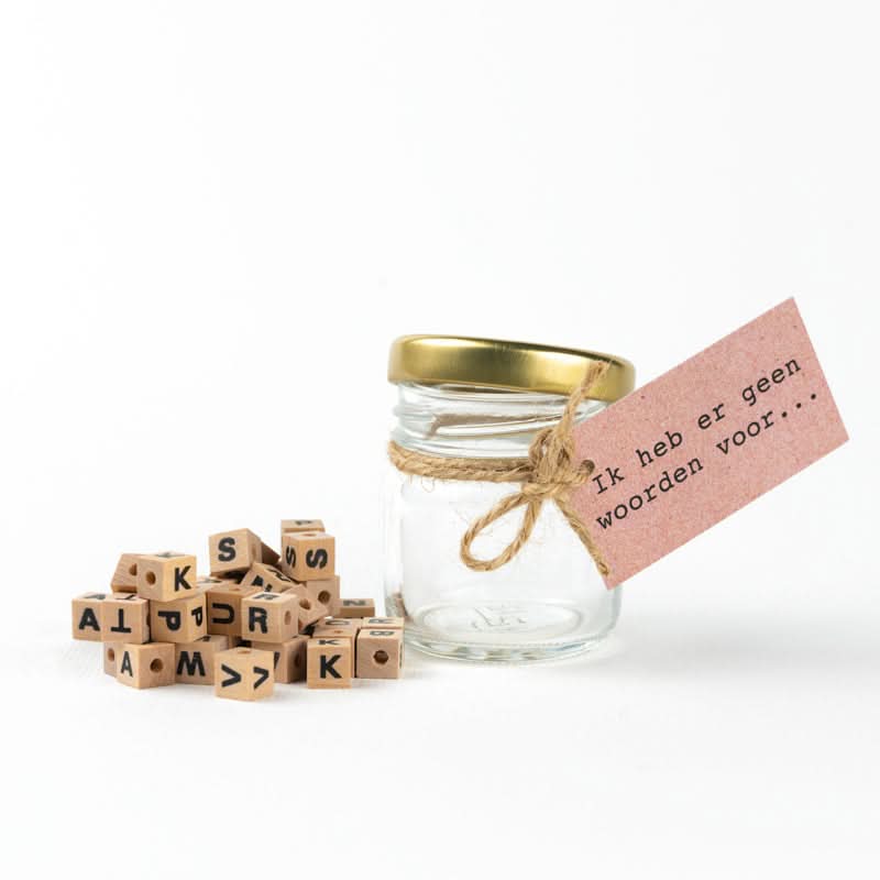 Potje gevuld met houten letter kralen