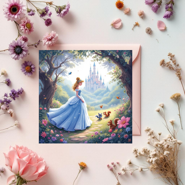 Aan de eerste zijde van de flap staat het verhaal van Assepoester. Zo stuur je niet alleen een kaart maar ook gelijk een verhaaltje
