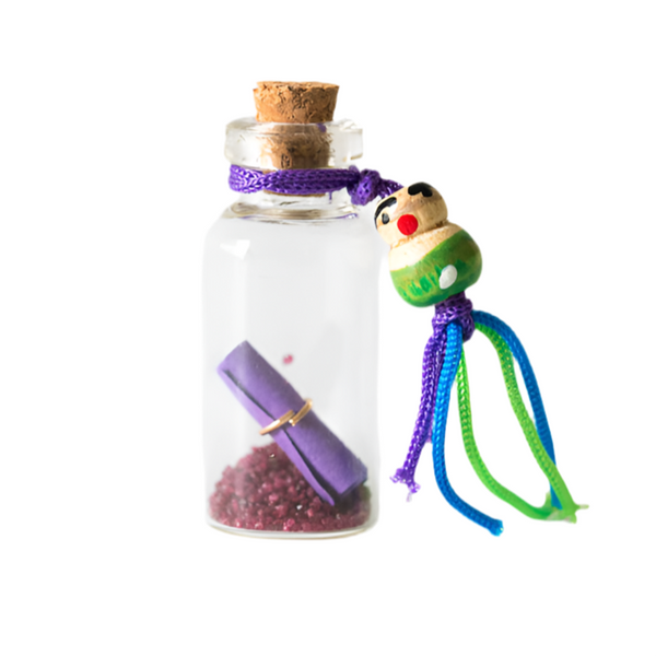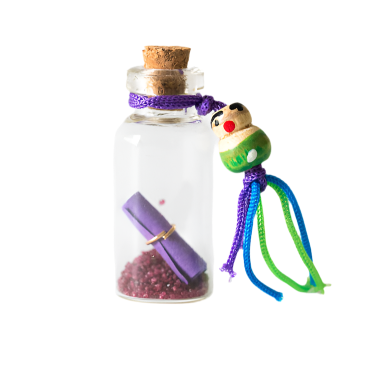 Het papiertje in het flesje is erg klein (1cm hoog en 5 lang) maar genoeg voor wellicht een lief zinnetje wat je er zelf met een pen of potlood in kan schrijven.